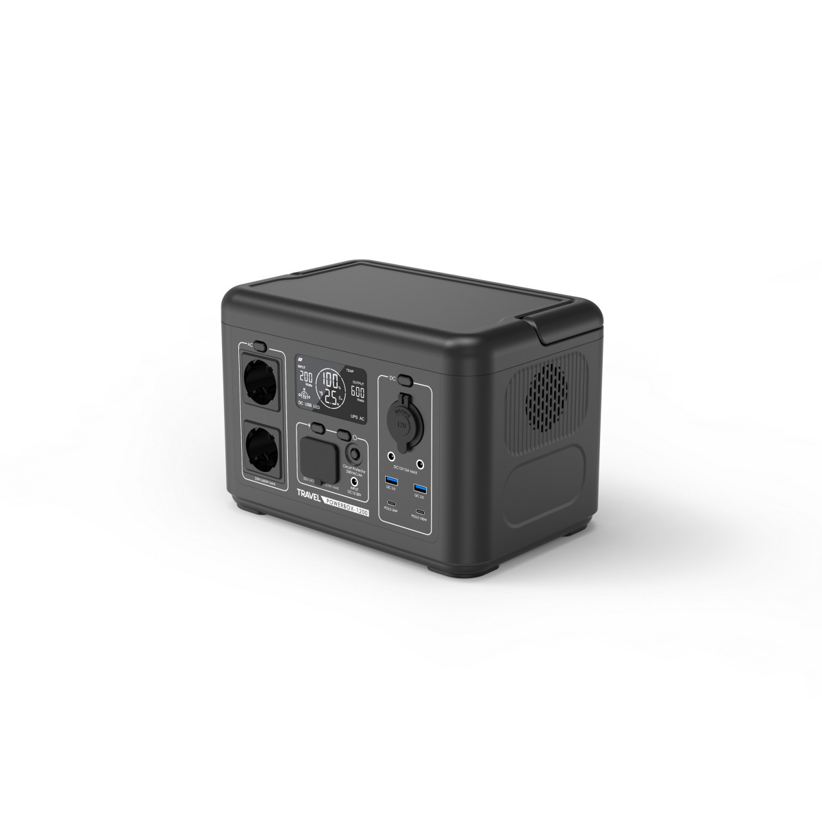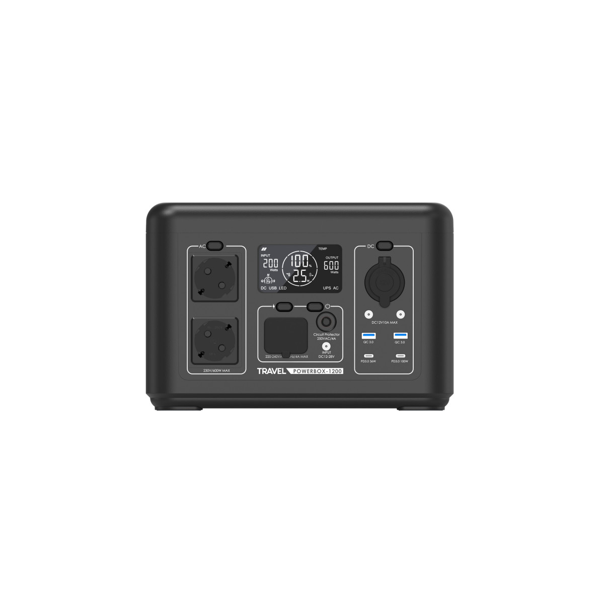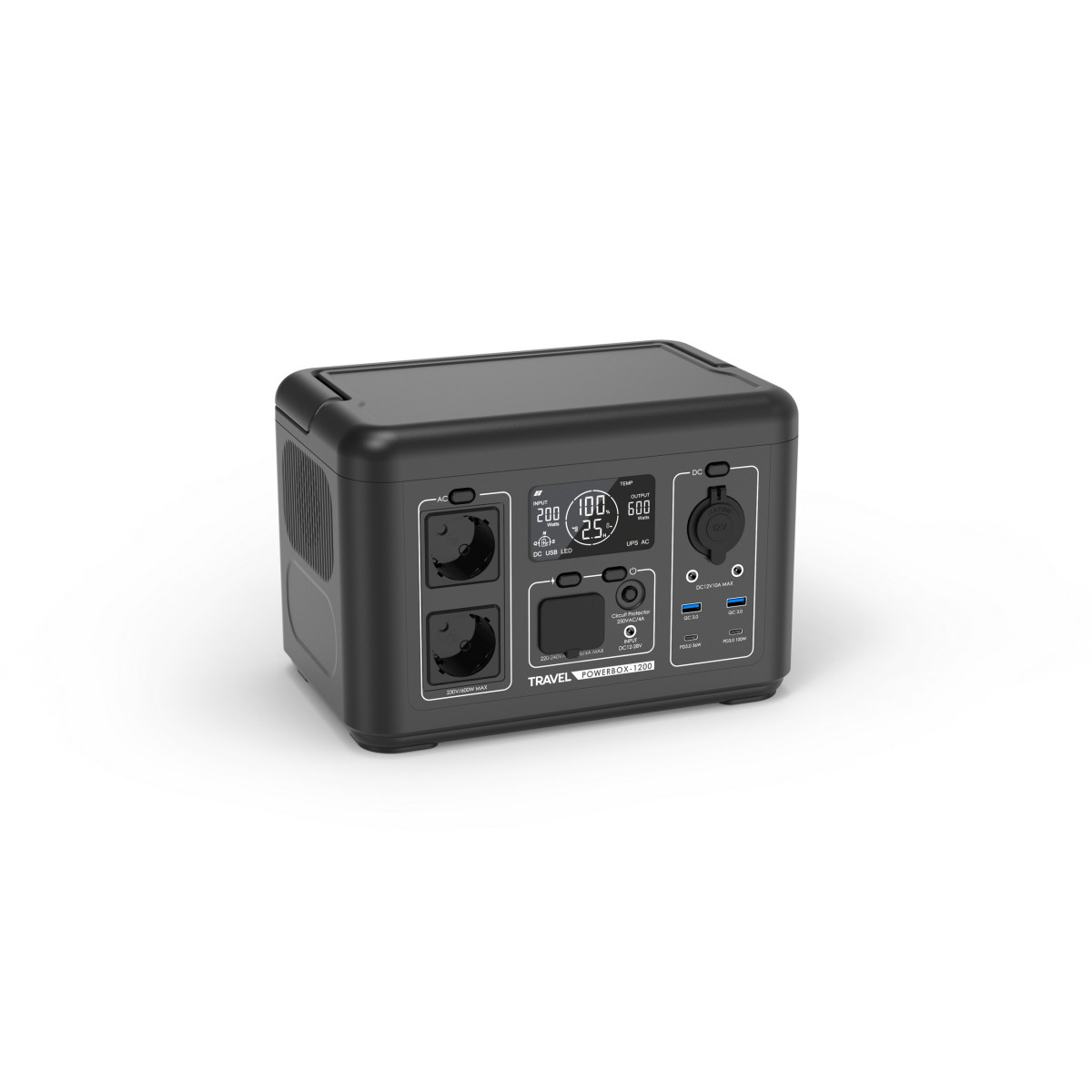 TRAVEL POWERBOX 1200 (600W) została wyposażona w nowoczesny akumulator LiFePO4 (litowo-żelazowo-fosforanowy) o pojemności 512Wh, który wyróżnia się wbudowanym systemem zarządzania BMS, dużą ilością cykli (do 3000 cykli) oraz niską wagą. Dzięki dużej liczbie cykli i bardzo niskiemu samorozładowaniu akumulator LiFePO4 doskonale sprawdza się jako niezawodne źródło energii w stacjach zasilania.